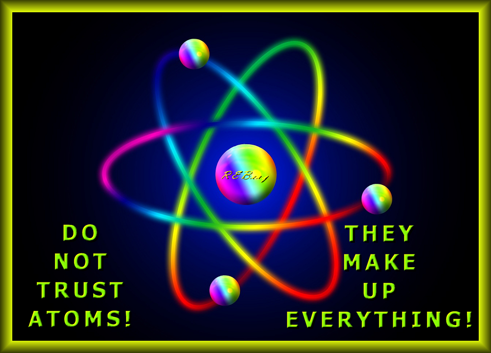 Elemental Liars Image September 21, 2023 R.E. Berg humor, joke, meme, Punishingly Punny, Scientific Sensibility atoms, everything, fabricate, make up, trust