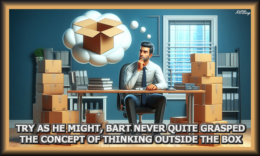 Boxing Mismatch Image May 15, 2025 R.E. Berg humor, Imaginary Reality, joke, Locational Logic, meme, Mental Gymnastics concept, grasp, office, thinking outside the box, try