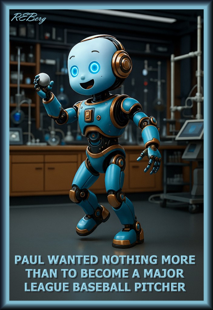 Striking Out Image October 8, 2025 R.E. Berg humor, Imaginary Reality, Irrational Recreation, joke, meme, Occupational Oddities ball, become, Major League Baseball, nothing more, pitcher, robot boy, wanted