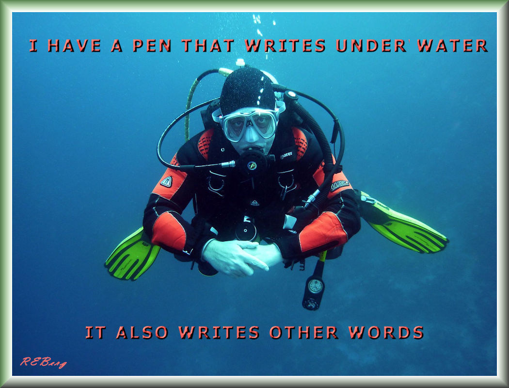 Magic Pen Image December 15, 2023 R.E. Berg humor, Irrational Recreation, joke, meme, Punishingly Punny, Ready Reading other, pen, under, water, words, writes
