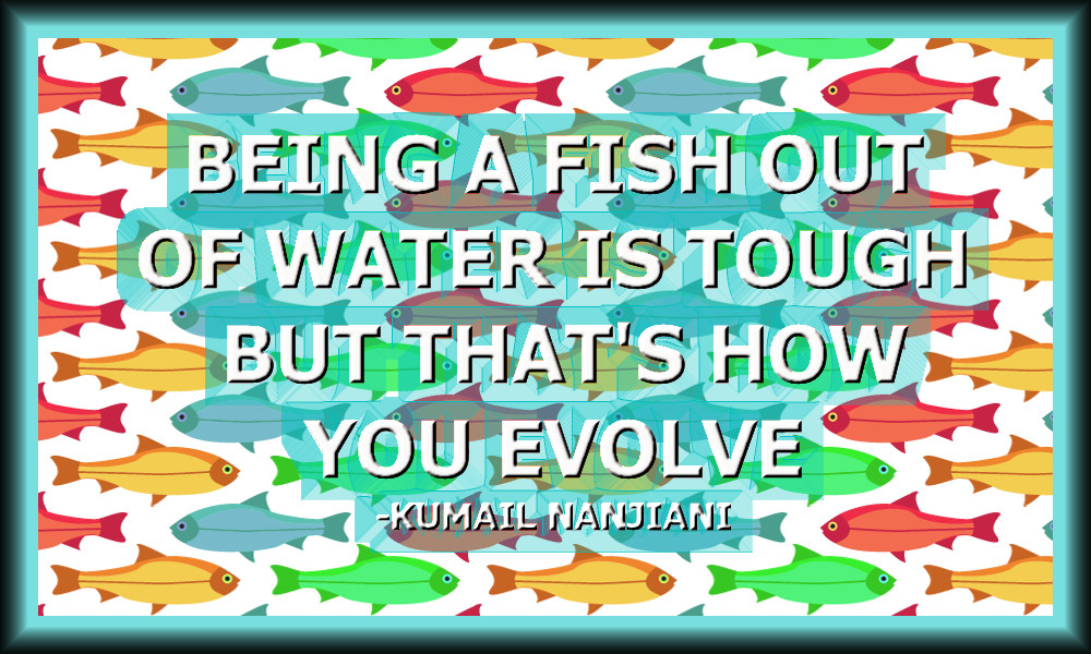 Land Roving Image September 2, 2023 R.E. Berg Deadly Living, humor, joke, Locational Logic, meme, Quote Quotient evolve, fish, how, Kumail Nanjiani, land, out, tough, water