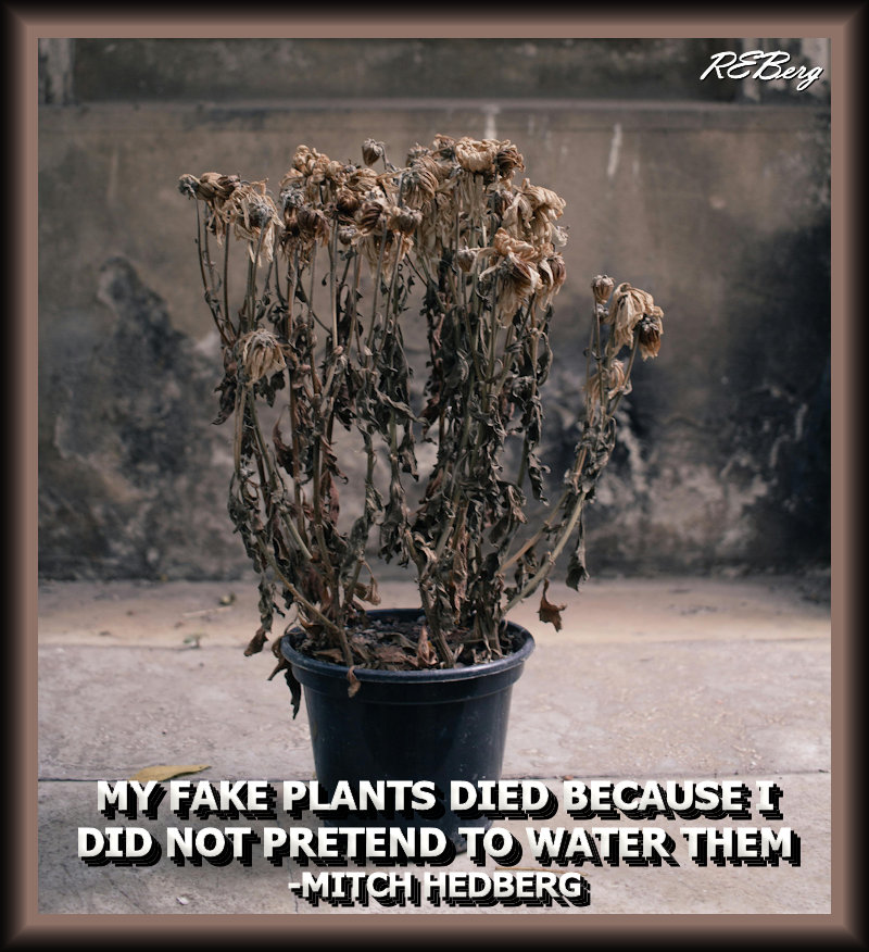 Cut And Dried Image August 18, 2024 R.E. Berg Agricultural Acumen, humor, joke, meme, Quote Quotient died, fake, Mitch Hedberg, plants, pretend, water