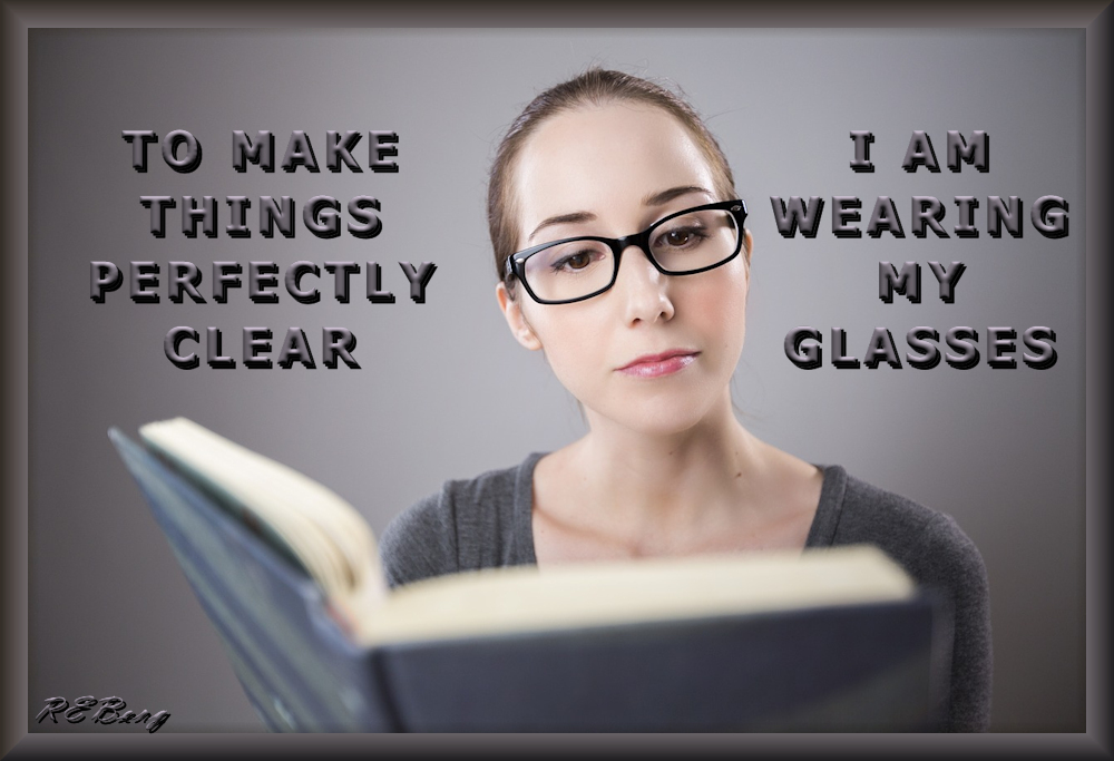 Focal Point Image June 7, 2023 R.E. Berg humor, joke, meme, Punishingly Punny, Ready Reading book, clear, eyeglasses, focus, perfectly, reading, wearing, woman