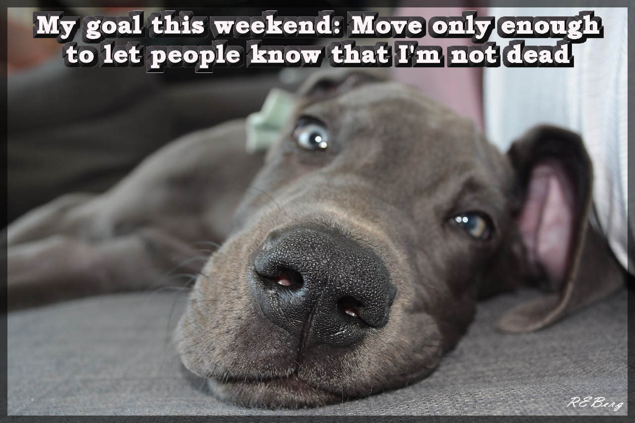Work Schedule Image August 5, 2023 R.E. Berg Companion Critters, humor, joke, meme, That's Living dog, lazy, motionless, movement, sign of life, weekend