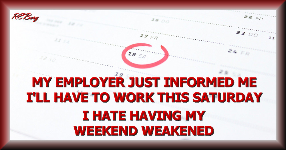 Day Decay Image October 19, 2023 R.E. Berg humor, joke, meme, Occupational Oddities, Punishingly Punny calendar, employer, hate, informed, Saturday, weakened, weekend, work