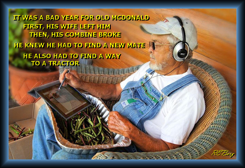 The Cheese Stands Alone Image November 12, 2023 R.E. Berg Agricultural Acumen, humor, joke, meme, Musical Mayhem, Occupational Oddities, Punishingly Punny, Rocky Relationships a tractor, attract her, bad, broke, combine, farmer, find, left, mate, new, Old McDonald, way, wife, year