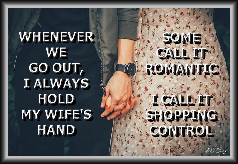 Austerity Measure Image April 6, 2023 R.E. Berg humor, joke, meme, Rocky Relationships going out, holding hands, romantic, shopping control, wife