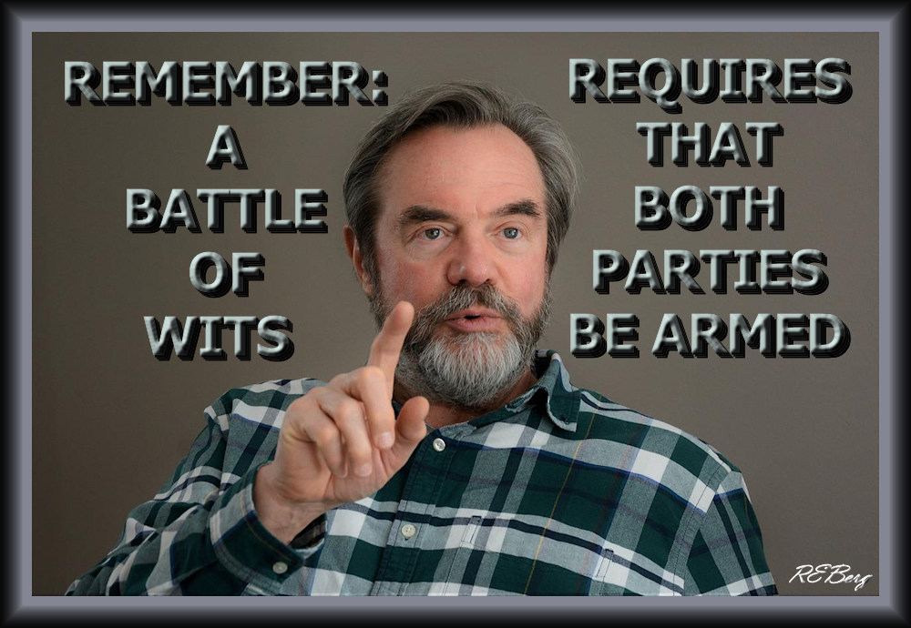 Check Your Weaponry Image May 21, 2023May 21, 2023 R.E. Berg humor, joke, meme, Random Observations, Social Hostility battle, both, parties, requirement, wits