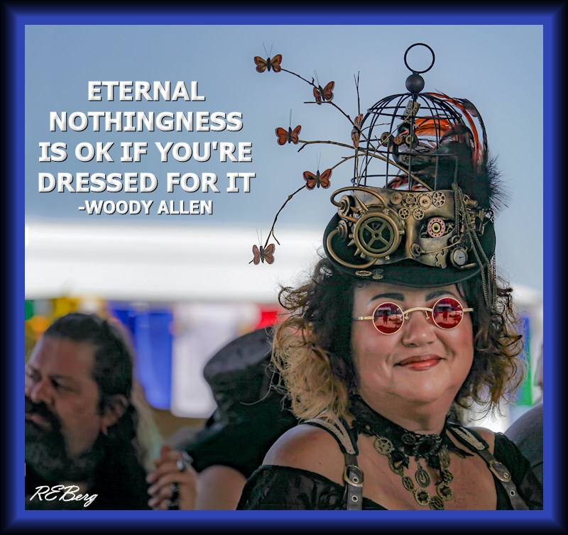 Dressed For Success Image July 29, 2023 R.E. Berg Fabulous Fashion, humor, joke, meme, Mental Gymnastics, Quote Quotient, Random Observations dressed, eternal, hat, nothingness, OK, steampunk, woman, Woody Allen
